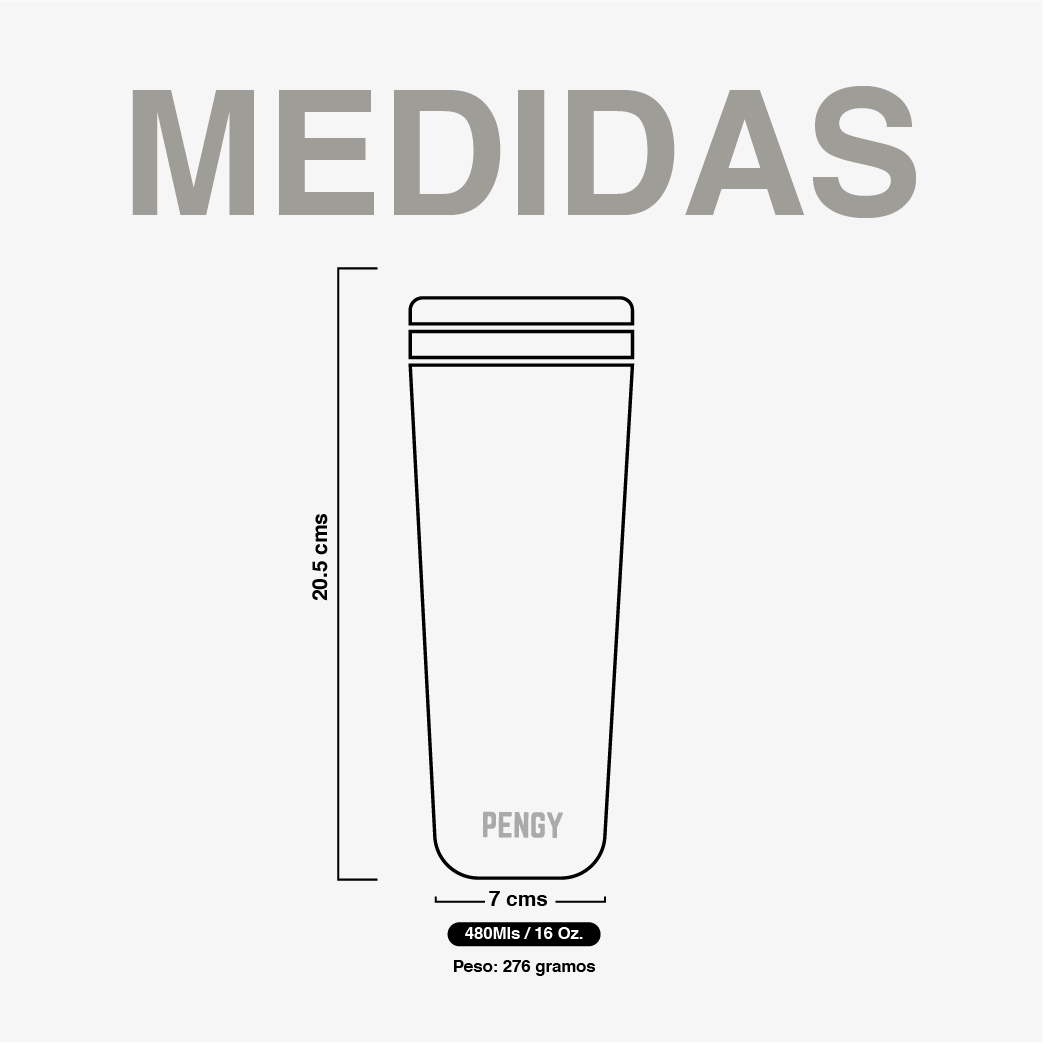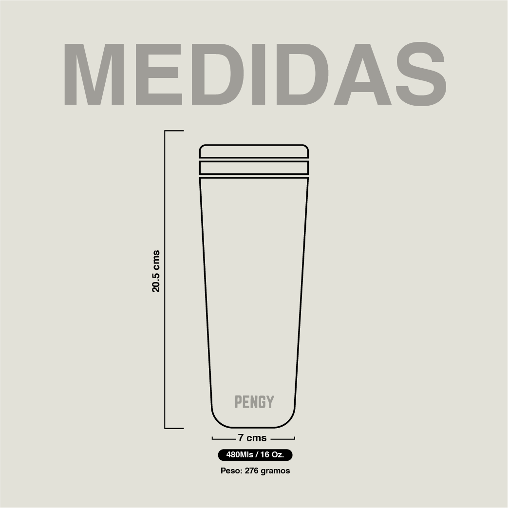Tu Pengy está hecho de dos capas de acero inoxidable de alta calidad separadas por una cámara de vacío que mantienen tus bebidas aisladas de la temperatura ambiente.